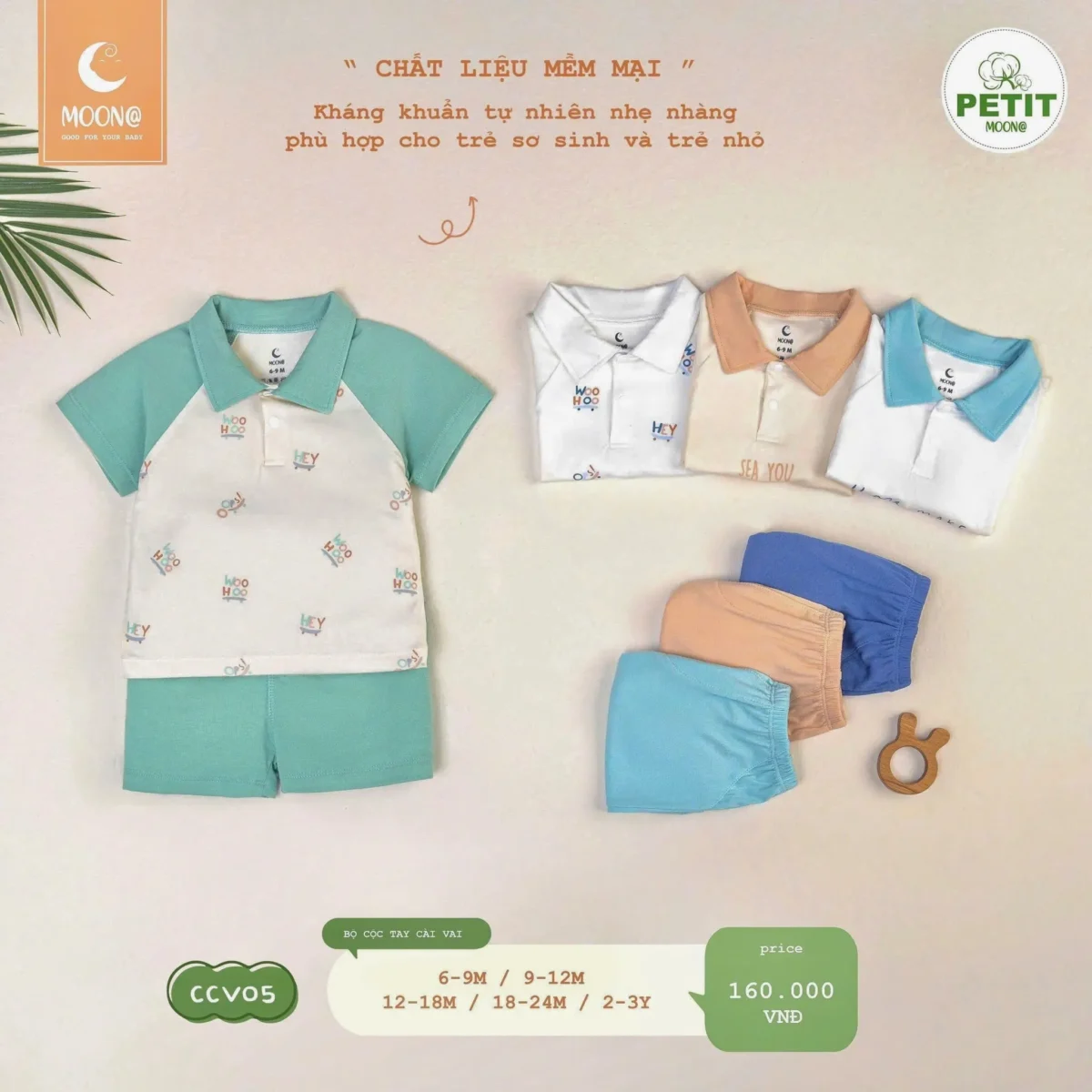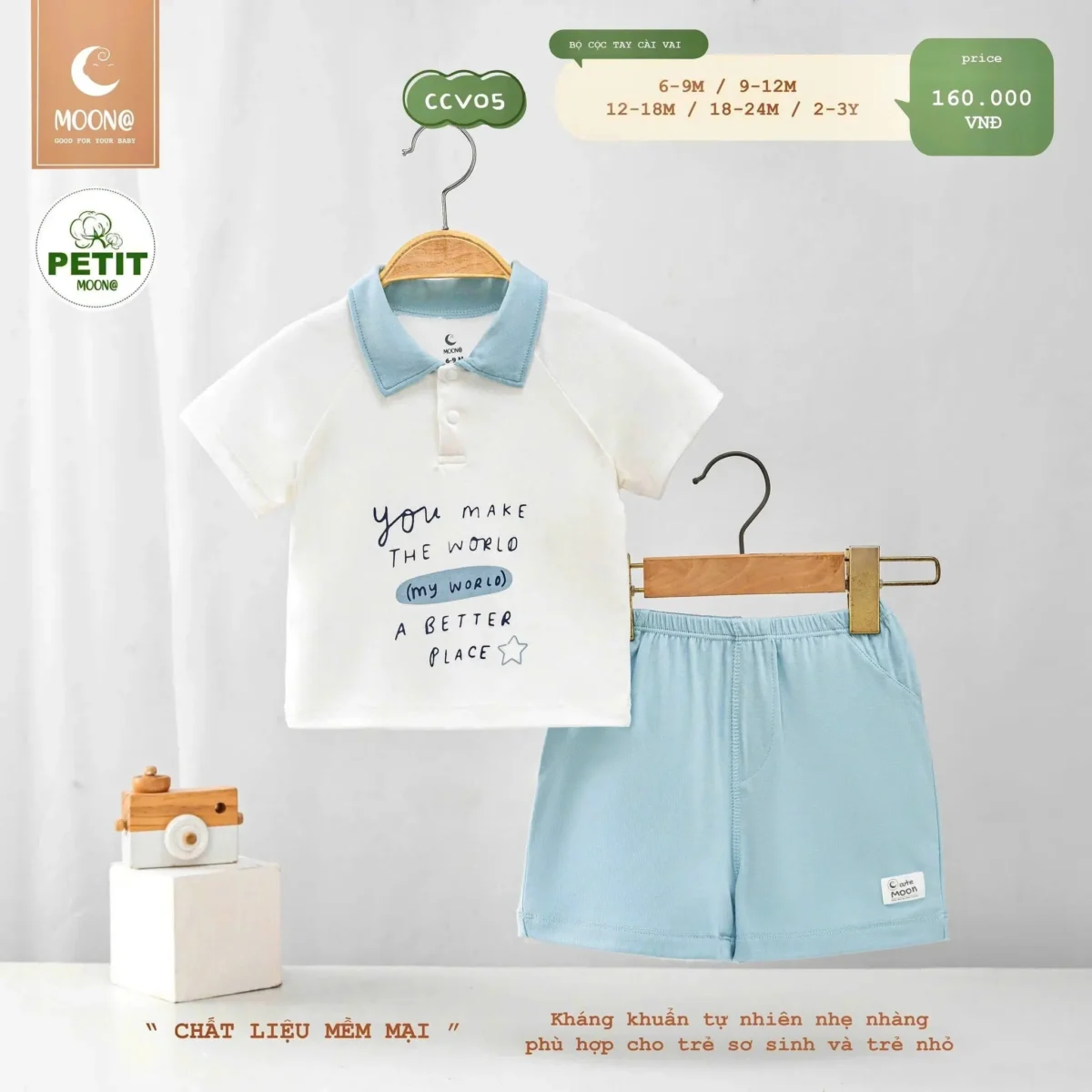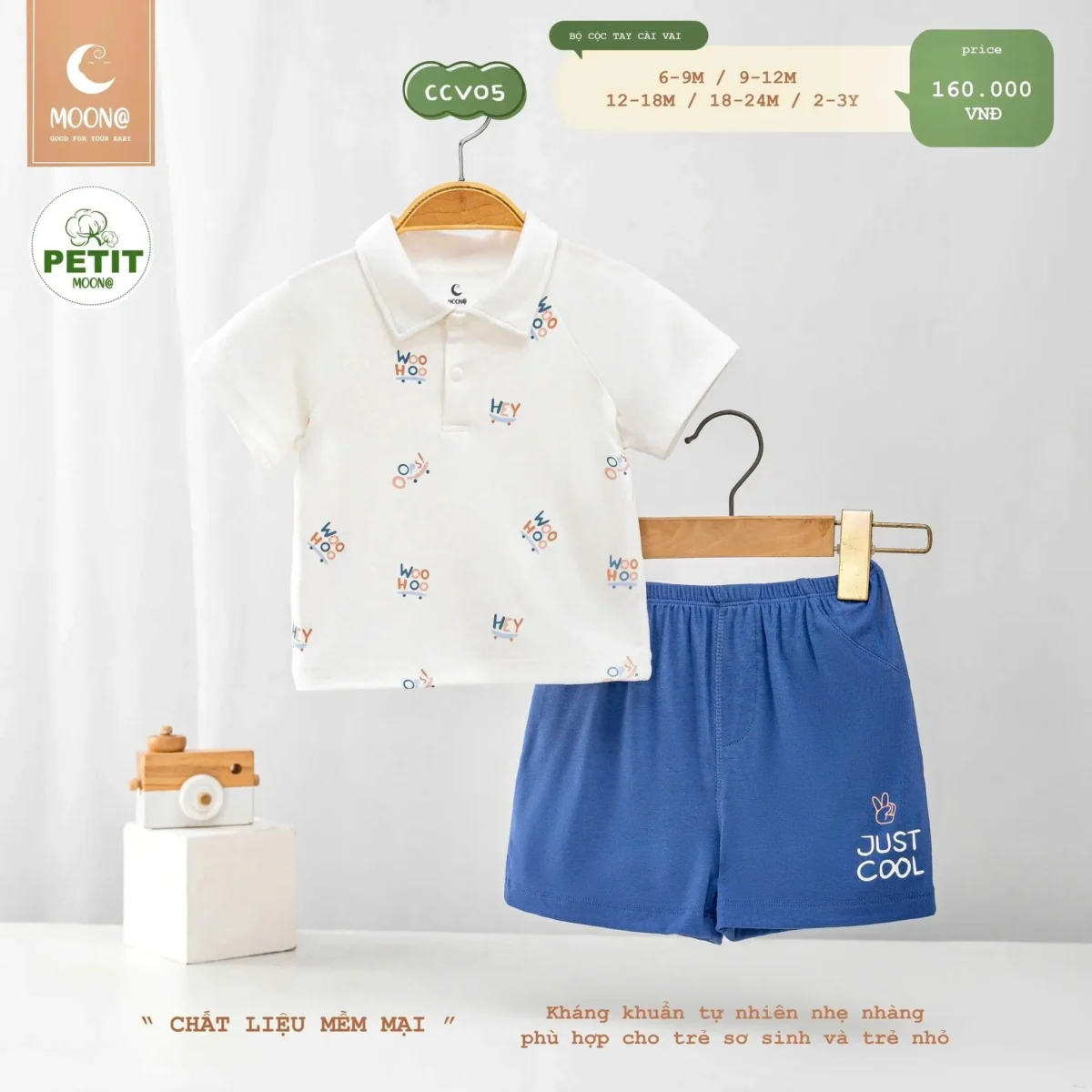 Sét Polo với chất vải Petit cao cấp siêu mềm mượt nhà Moon cho bé diện đi học, đi chơi sang sịn mà lại tha hồ vận động và vui chơi. Chất vải Petit dệt theo công nghệ NANO giúp bề mặt vải mềm mượt mà lại thấm hút cực kỳ tốt. Hãy cùng các bé Trải nghiệm những sản phẩm chất lượng.